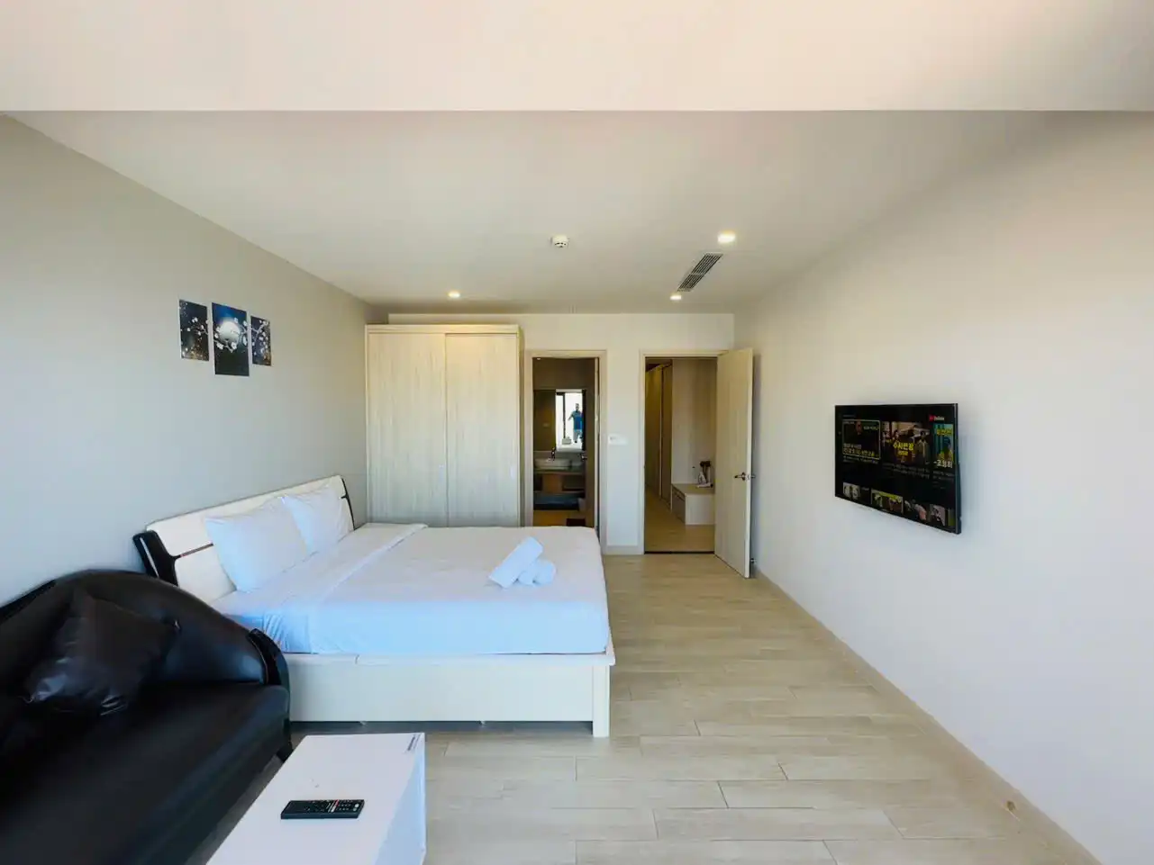 Căn hộ có diện tích rộng 70m², được thiết kế hiện đại với 2 phòng ngủ riêng biệt, không gian thoáng đãng và riêng tư. Hệ thống giường gồm 2 giường 1m8 đáp ứng tiêu chuẩn lưu trú 4 người lớn và 2 trẻ em dưới 12 tuổi.