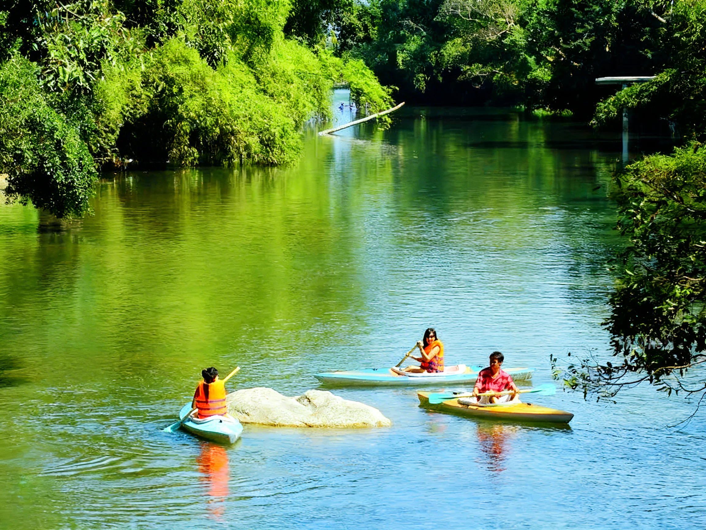 Quý khách có thể trải nghiệm những hoạt động vui chơi, giải trí ngoài trời đầy thú vị như: Xe đạp nước đôi, thuyền kayak…